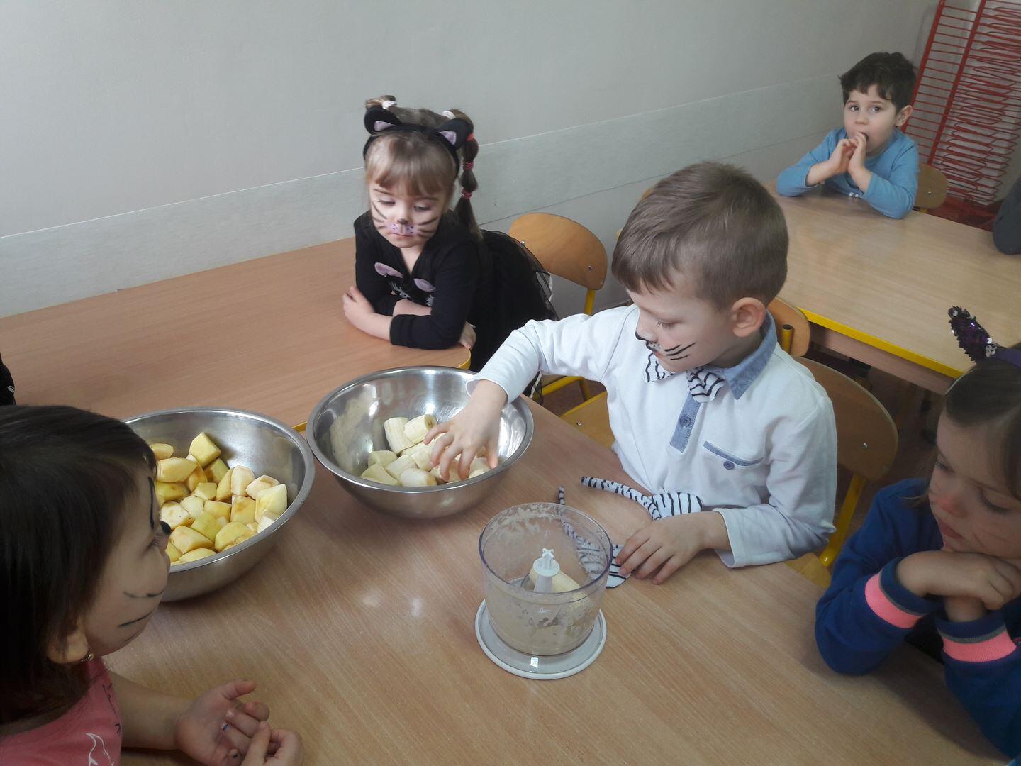 "Pszczółki" doskonale wiedzą co szkodzi, a co jest dobre dla zębów. W ramach realizacji projektu o zębach nasze przedszkolaki najpierw dowiedziały się dlaczego zęby się psują, jakich produktów trzeba unikać, a jakie nie szkodzą naszym zębom. Następnie poznane wiadomości wprowadziliśmy w życie robiąc soki owocowe oraz chrupiąc soczyste marchewki. Dzieci spisały się na medal.